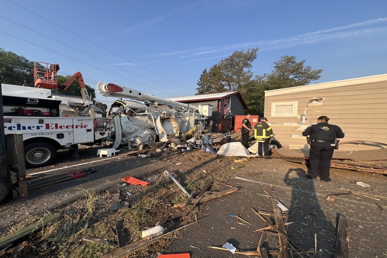 BEND (Released from Bend Fire & Rescue)-Early in the morning of Friday, August 29, 2025, multiple 911 callers across Bend reported hearing a loud explosion, but there was no identified location or source for the explosion.ย A few minutes later, at 5:34 am, a 911 caller reported multiple cars striking debris on the Bend Parkway, with one of the vehicles sustaining a punctured fuel tank.ย Fire crews arrived on scene and were able to mitigate the fuel leak.ย The source of the debris was found to be a large explosion that occurred at Kercher Electric, 132 NE Yale Avenue.ย A shipping container located outside the business had exploded, resulting in several businesses in the area sustaining damage to windows, doors, and walls.ย Two businesses, Kercher Electric and the neighboring Arbor Builders, sustained significant structural damage and were tagged “Do Not Occupy” by the City of Bend Building Department.ย A total of six businesses received some degree of damage as a result of the explosion.ย All the businesses were unoccupied at the time of the explosion due to the early hour.ย ย