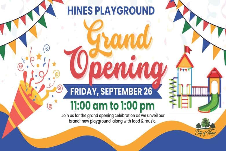 HINES-Come visit the grand opening of the new Hines Playground on Friday, September 26, 2025 …Read More