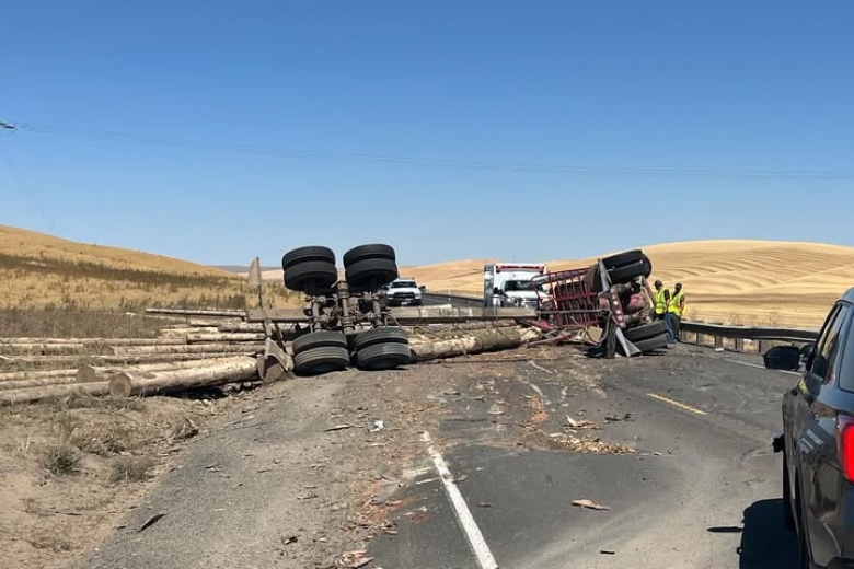 WALLA WALLA COUNTY – The Washington State Patrol said Tuesday a logging truck accident about three miles west of Waitsburg was the result of that truck’s driver improperly passing a Washington State Department of Transportation water truck on eastbound U.S. 12.