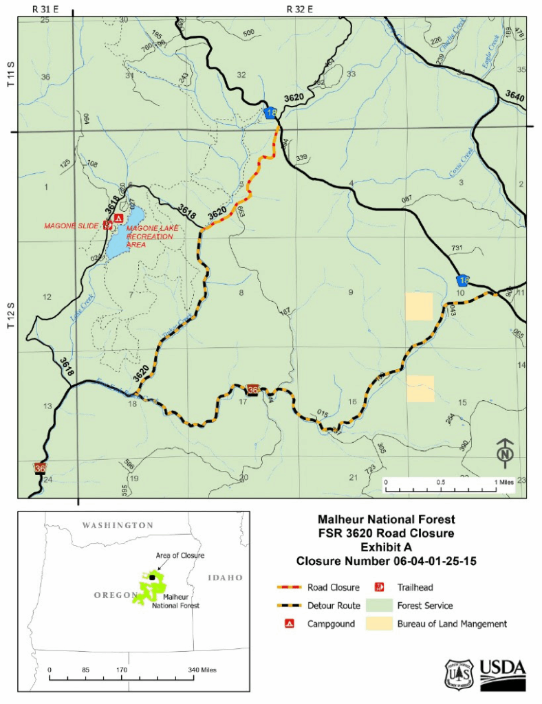 The Malheur National Forest has temporarily implemented a closure restricting public access starting August 25, 2025, through September 12, 2025, on Forest Service Road (FSR) 3620 starting at the intersection of FSR 1800 and FSR 3620, southwest to the intersection with FSR 3618.