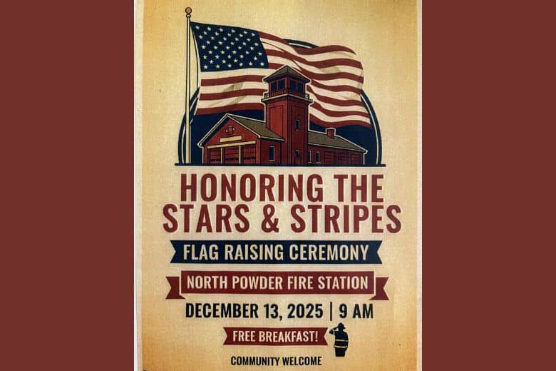 NORTH POWDER — The North Powder Fire Department will hold a special flag-raising ceremony this Saturday, December 13th, marking the completion of a project thatโs been years in the making. A free community breakfast will be served from 8:30 to 10 a.m., with the flag-raising set for 9am.